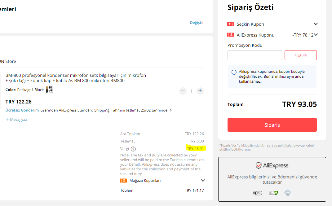 aliexpress gumruk vergisi sorunu