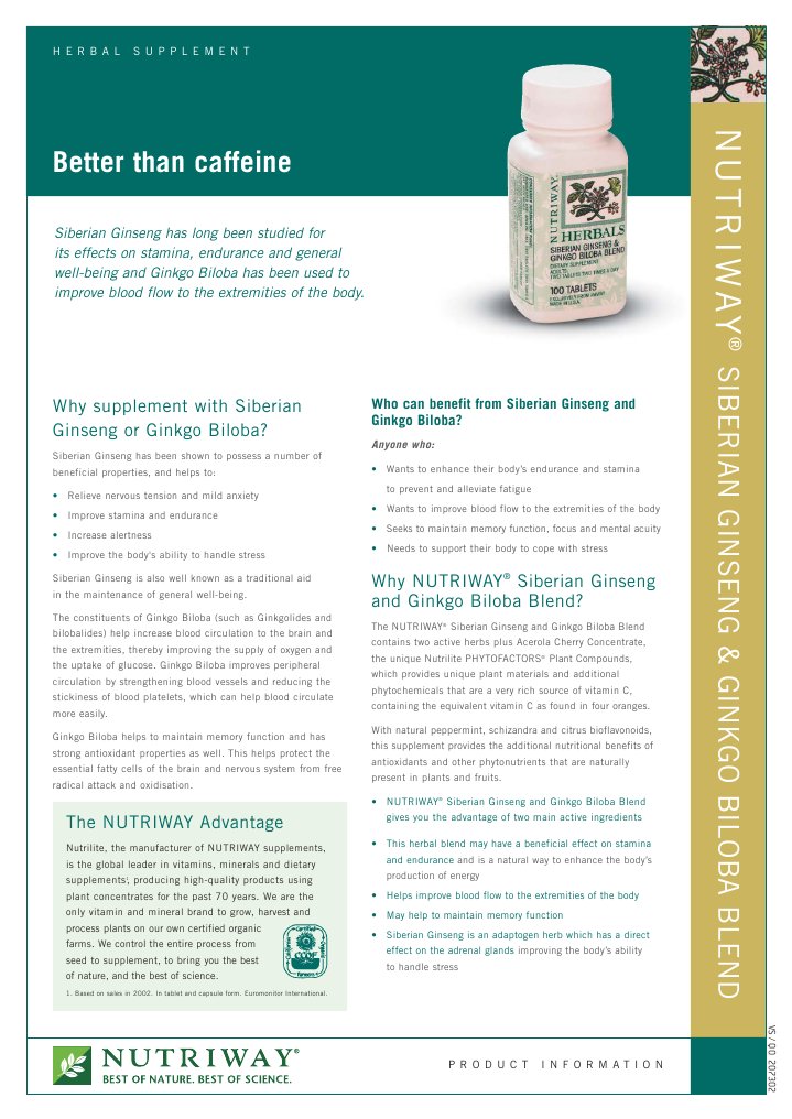 amway nutrilite siberian ginseng and ginkgo biloba