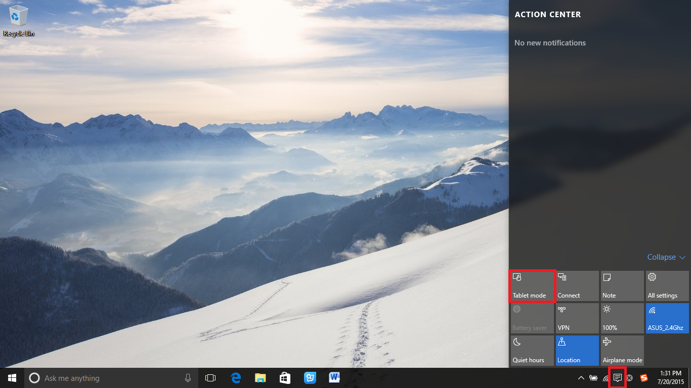 windows 10 tablet mode turn off