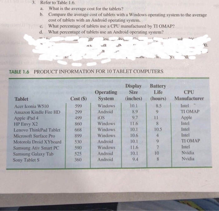 solved refer the below table cost