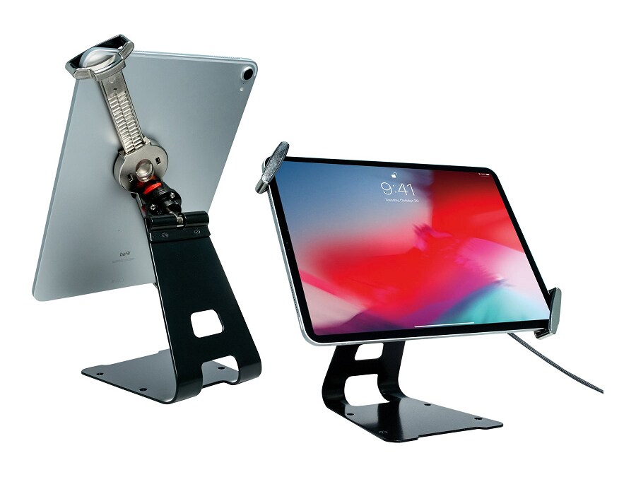 tabstand4 arkon tablet stand weighted base w telescoping 7 5in to 9 75in height adjustable shaft