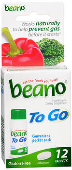 beano to go gas prevention bloating relief 12 tablets