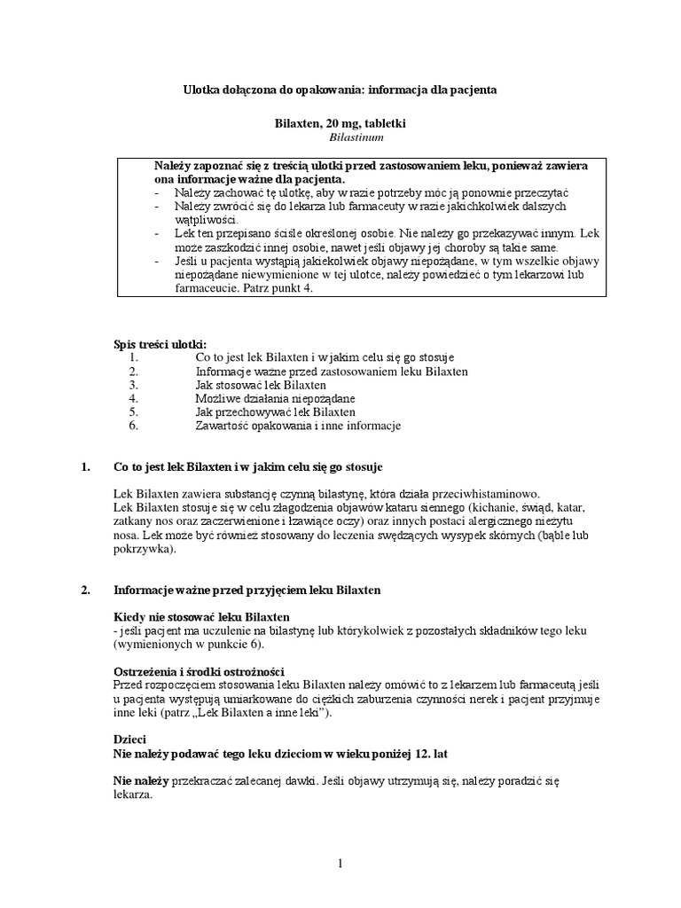 bilaxten 20 mg tabletki 10 szt
