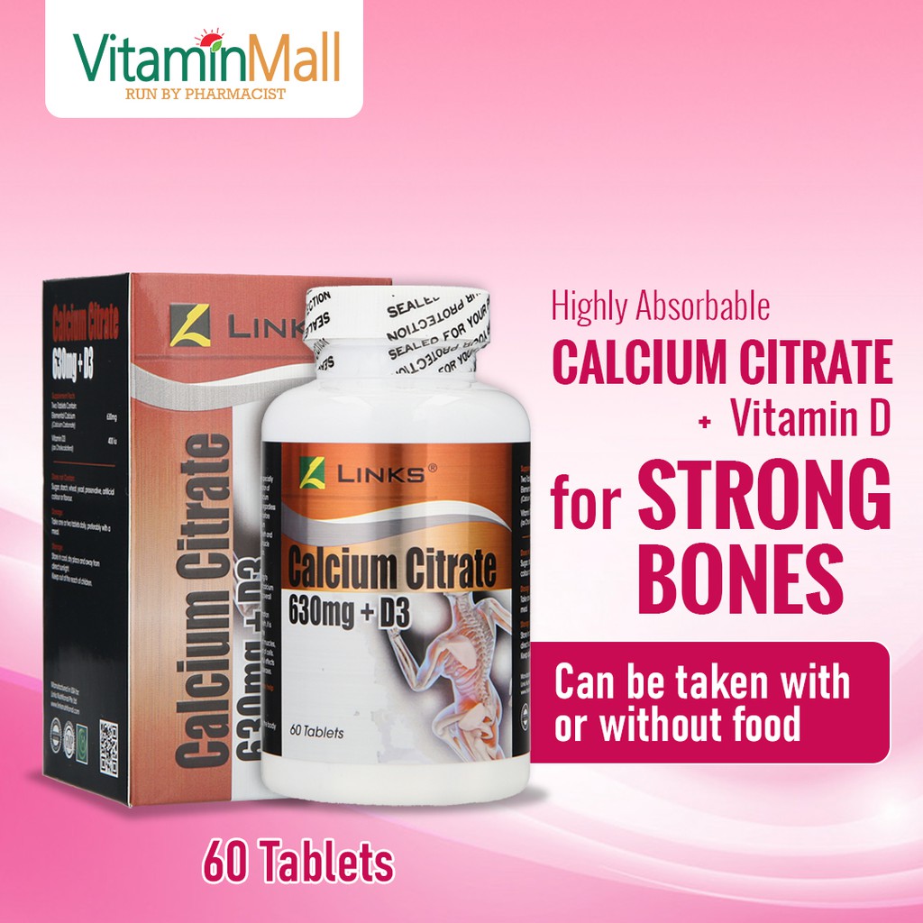 links calcium citrate 630mg vitamin d3 60 tablets calcium supplement for superior absorption support bone health