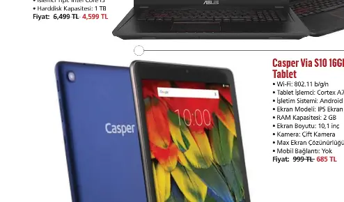 casper via s10 10 1 ips lcd ekran 16gb sabit disk 2gb bellek wi fi android 6 0 tablet fiyati ve ozellikleri ereyon