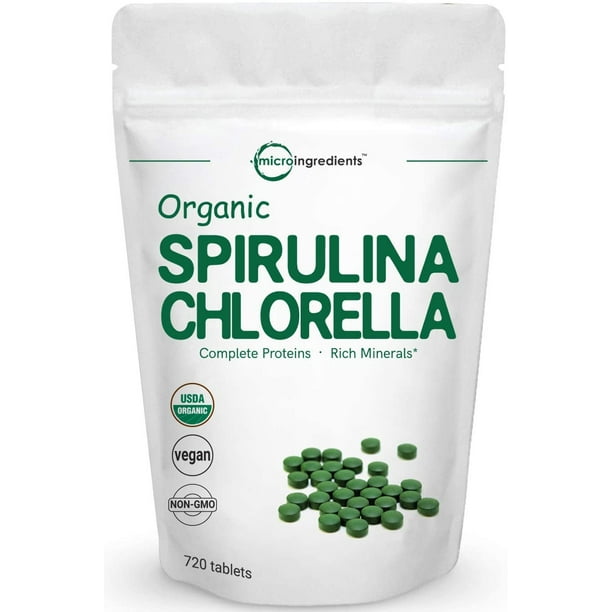 organic chlorella spirulina tablets 3000mg per serving 720 counts 120 servings 4 months supply rich in chlorophyll prebiotics immune vitamins