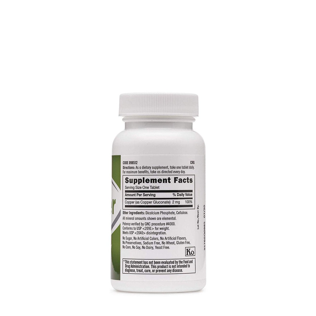 gnc copper 2 mg 100 vegetarian tablets