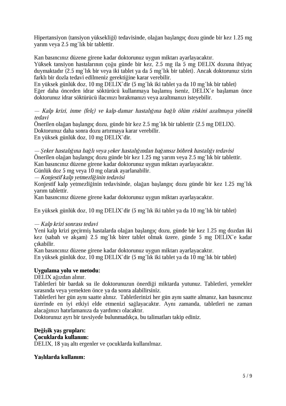 delix 5 mg tablet nedir ne ise yarar