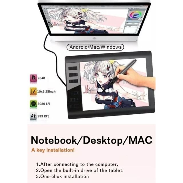 graphics drawing tablet 10 x 6 inch set