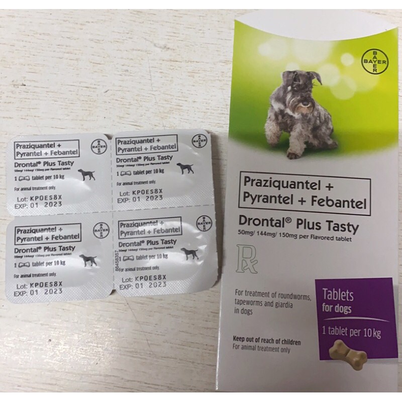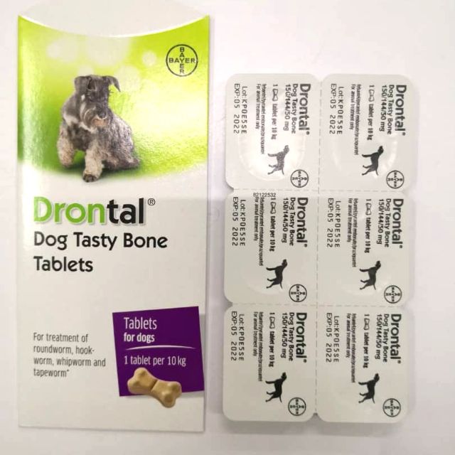 6 tablets worm bayer drontal plus dog meat flavor is a broad spectrum antihelminthic agent for the prevention and treatment of helminth infections in