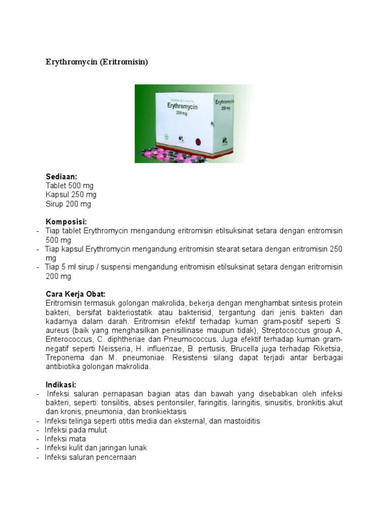 erythromycin 500 mg antibiotik makrolida infeksi bakteri akut infeksi kulit mata telinga