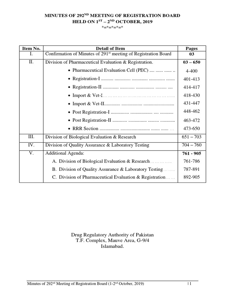292nd meeting of registration board