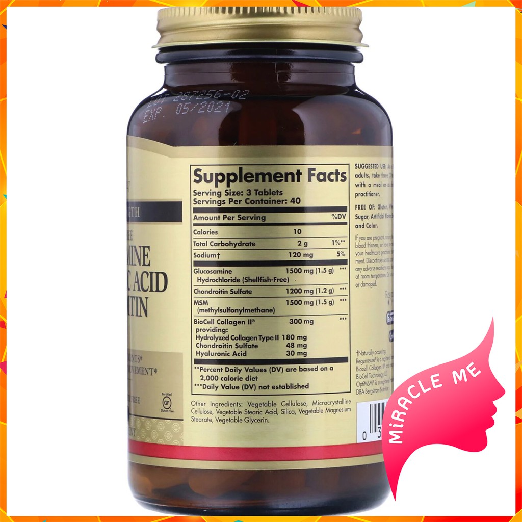 solgar glucosamine hyaluronic acid chondroitin msm shellfish free 120 tablets