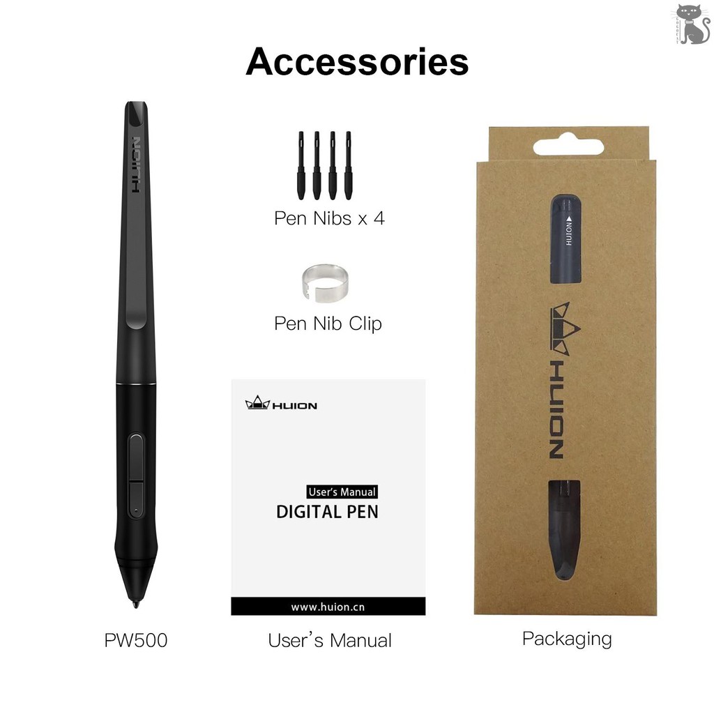 huion pw500 battery free stylus 8192 levels pressure with 4pcs pen nibs pen clip for huion gt 221 graphics tablet