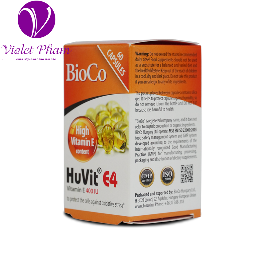 thực phẩm bảo vệ sức khỏe bổ sung vitamin e bioco huvit e4 hộp 60 vien