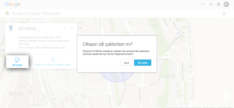 kaybolan veya calinan cihazinizdaki