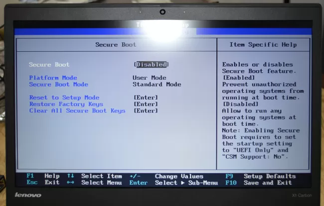 boot failure in thinkpad x1 carbon 6th