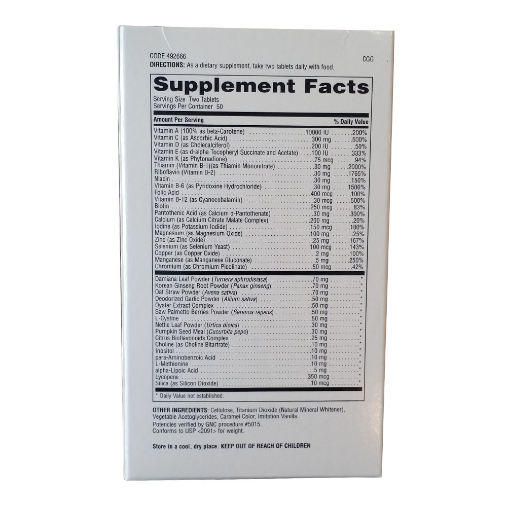 gnc mega men multivitamin with timed release formula 100 tablets