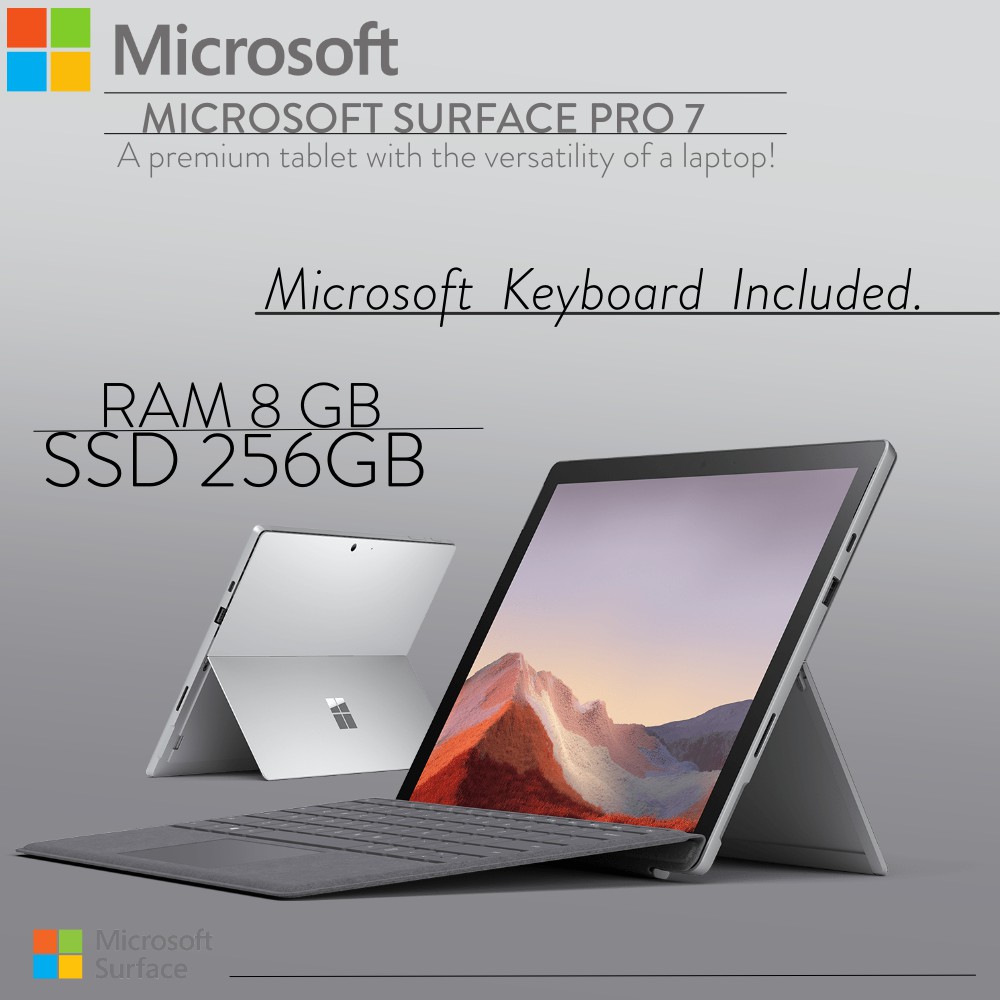 microsoft surface pro 7 ms7 12 3 2736x1824 10 point touch display tablet pc w surface type cover surface pen intel 10th gen core i3 4gb ram