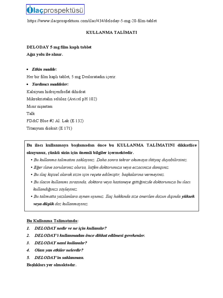 deloday 5 mg tablet fiyati