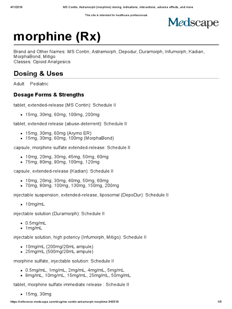 morphine oral uses side effects