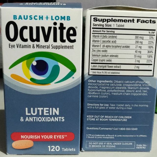 bausch lomb ocuvite vitamin mineral supplement tablets with lutein 120 count bottle