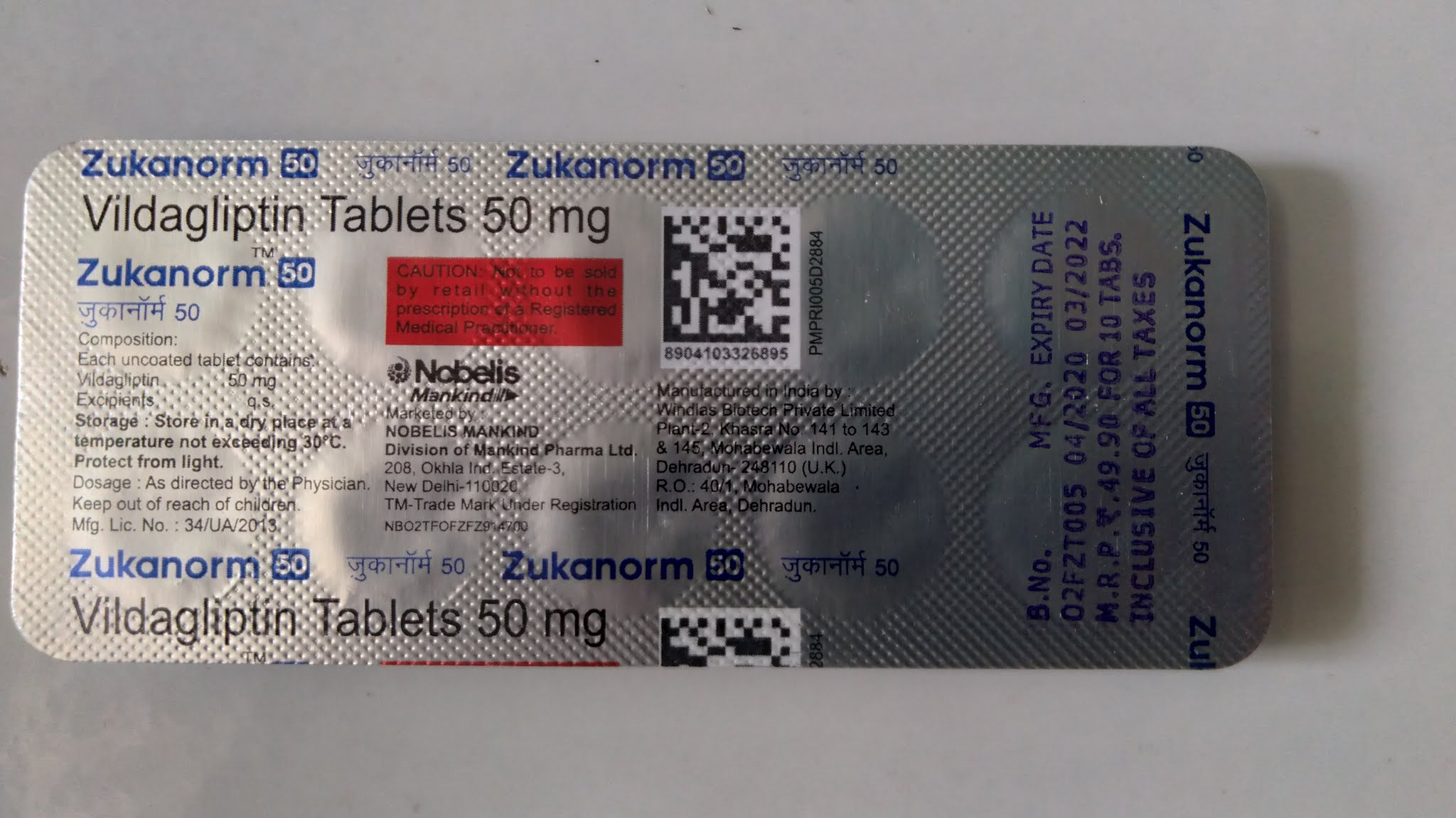 vildagliptin fixed dose combination