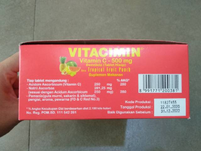 vitacimin tropical fruit punch perbox isi 50 strip tablet hisap 500mg
