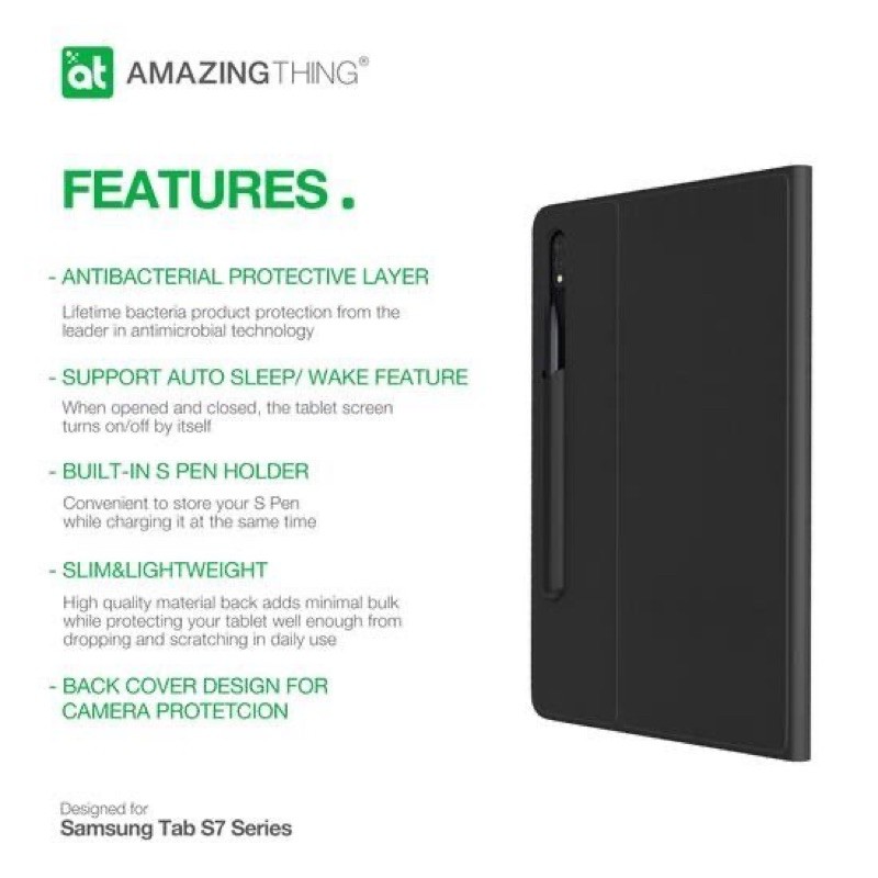 amazingthing samsung tab s7 s7 evolution anti bacterial folio case