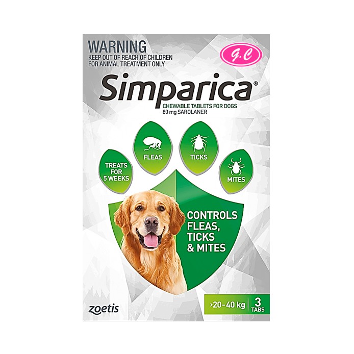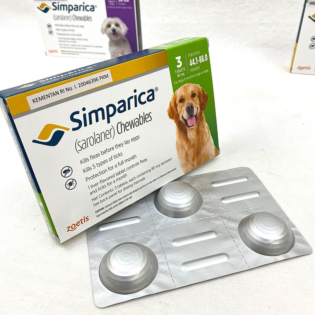 simparica chewable tablet 80 mg for large dog 20 1 40 kg 3 tablets green tick flea control