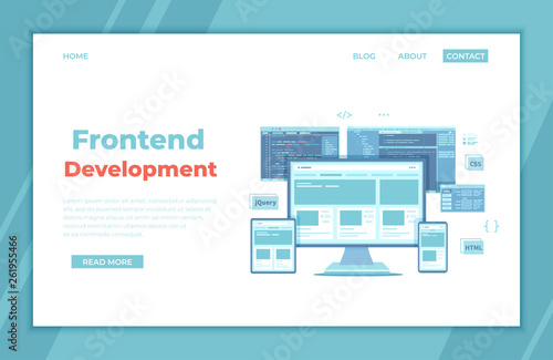 https www dreamstime com frontend development creating site layout template website ui ux interface monitor screen tablet phone html css js frontend image144892517