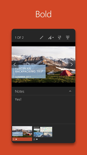 The powerpoint app gives you access to the familiar slideshow maker tool you already know.