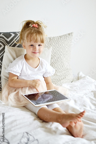 little girl preschooler learning online solving puzzles playing educational games on tablet at home stock image image of cute game 201171055